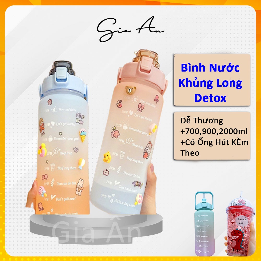 Nhà cửa & Đời sống > Bộ đồ bàn ăn > Bình nước & phụ kiện || Bình Đựng Nước Khủng Long, Bình Nước Nhựa Trong Suốt, Dễ Thương Có Vạch Báo Giờ Uống Nước 700ml, 2L Gia Dụng Gia ÂnCòn hàng