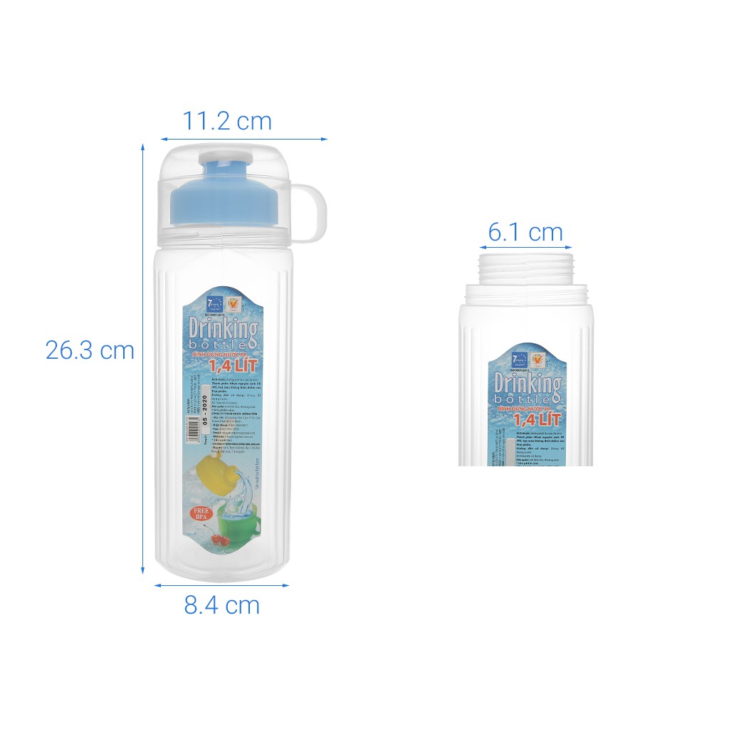 Cảm ơn bạn đã quan tâm đến sản phẩmBình đựng nước nhựa 1.4 lít làm từ nhựa nguyên sinh PP an toàn, bền đẹp, ít bám bẩn, dễ vệ sinh.