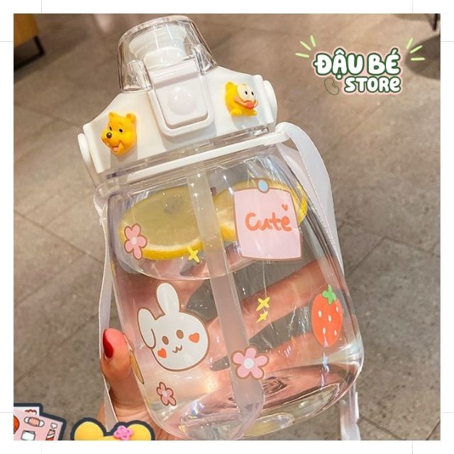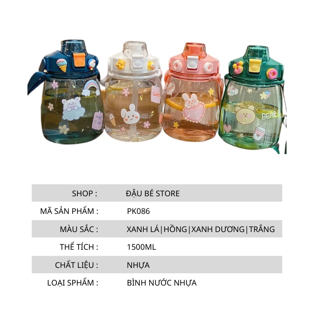 BÌNH ĐỰNG NƯỚC NHỰA 1500ML - BÌNH NƯỚC KÈM STICKER CÓ DÂY ĐEO CUTE,DỄ THƯƠNG,XINH XẮN PHONG CÁCH HÀN QUỐC - DAUBE -PK086