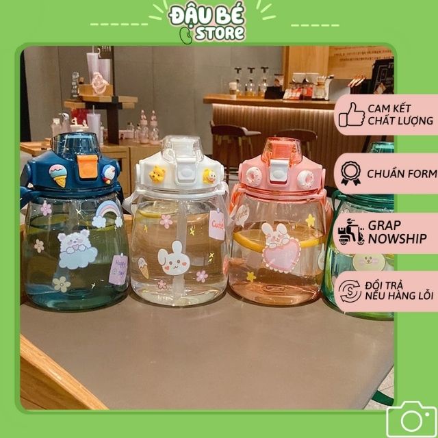 Nhà cửa & Đời sống > Bộ đồ bàn ăn > Bình nước & phụ kiện || BÌNH ĐỰNG NƯỚC NHỰA 1500ML - BÌNH NƯỚC KÈM STICKER CÓ DÂY ĐEO CUTE,DỄ THƯƠNG,XINH XẮN PHONG CÁCH HÀN QUỐC - DAUBE -PK086Còn hàng
