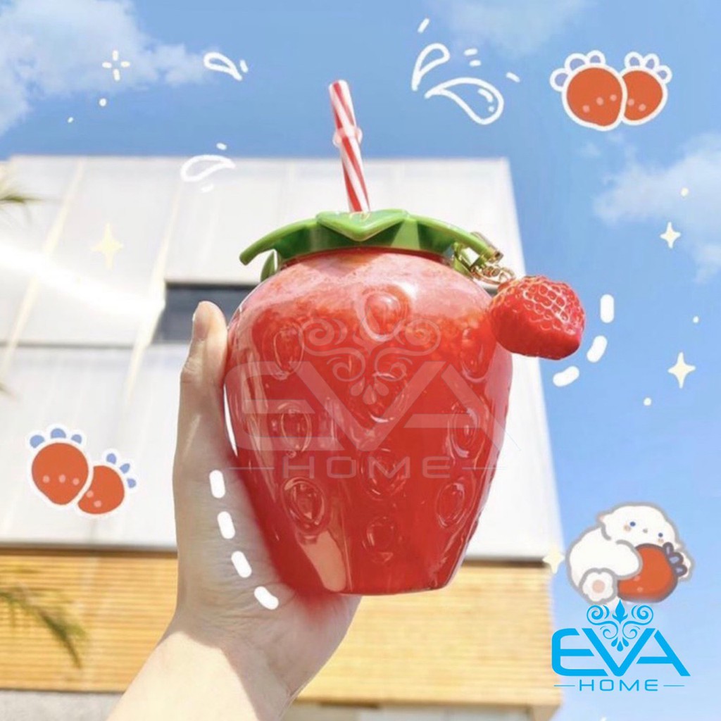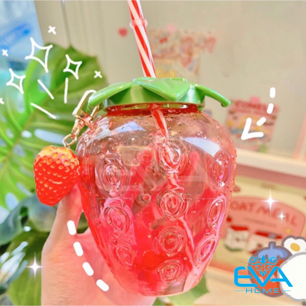 Nhà cửa & Đời sống > Bộ đồ bàn ăn > Bình nước & phụ kiện || Bình Đựng Nước Nhựa 500ML Kiểu Dáng Quả Dâu Tây Tặng Kèm Ống Hút Và Mốc Khóa Trái Dâu Cute M3488Còn hàng