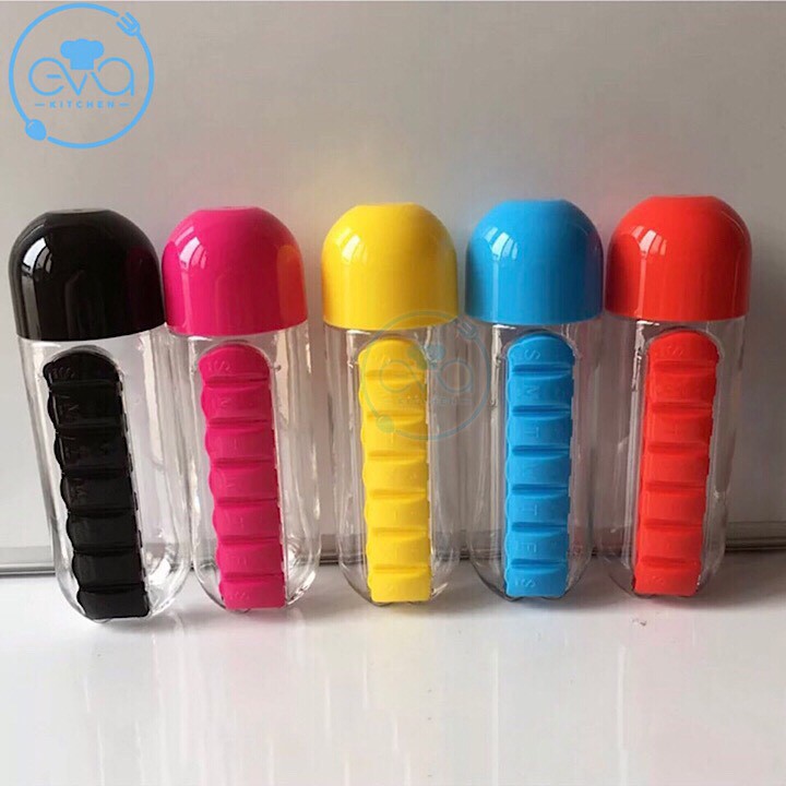 Bình Đựng Nước Nhựa 600 Ml Có 7 Ngăn Đựng Thuốc Và Vitamin