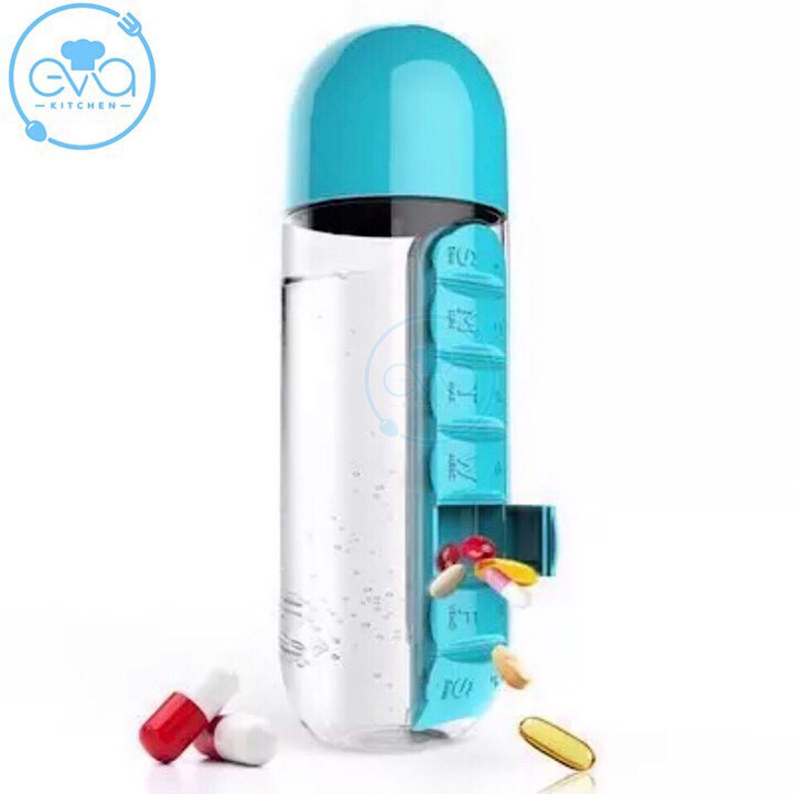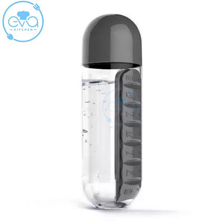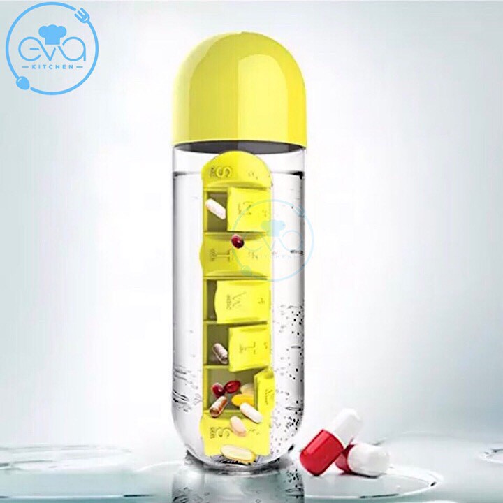 Mô tả sản phẩm : Bình nước thuốc nhựa 600ml có ngăn đựng thuốc cho 7 ngày