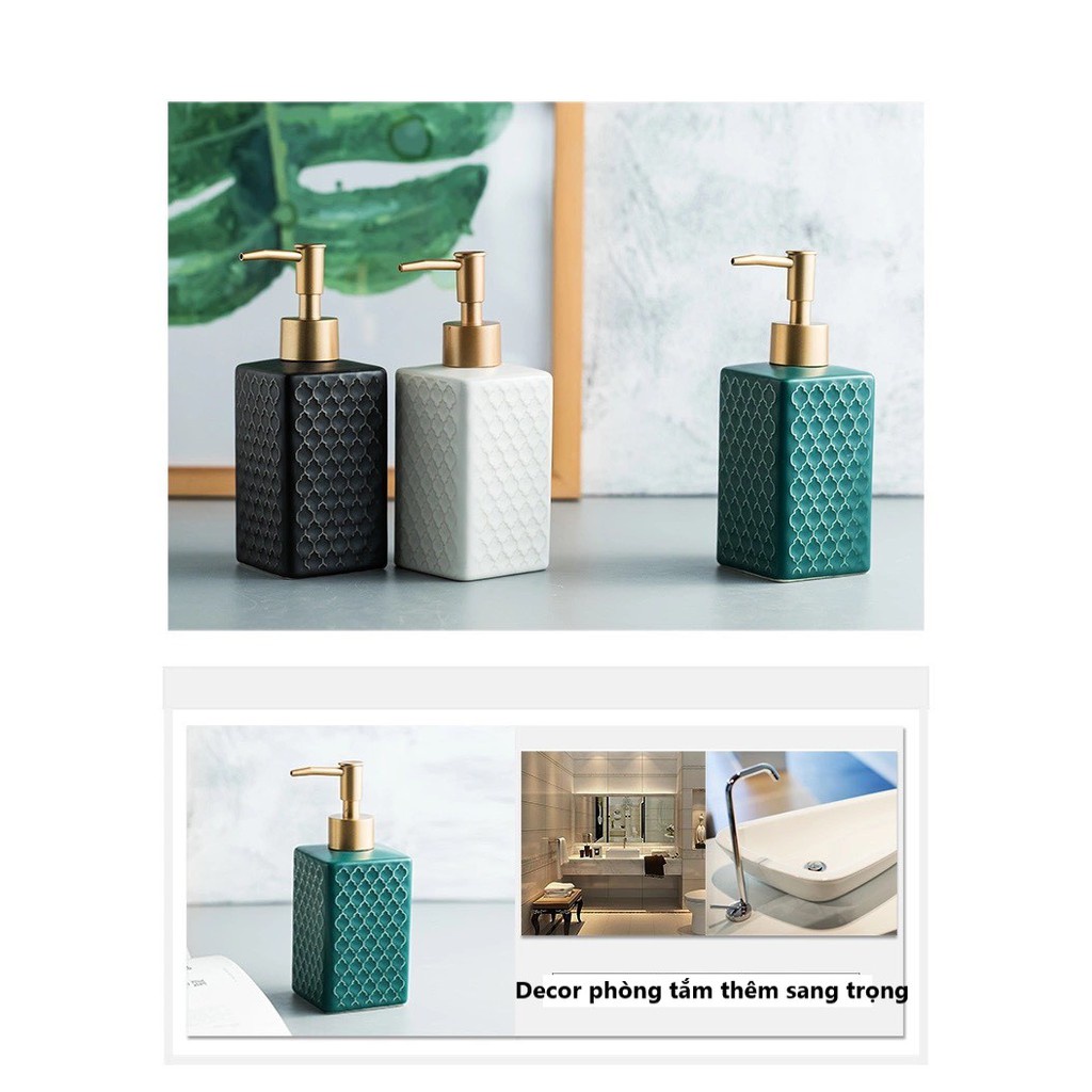 Bình Đựng Nước Rửa Tay Có Vòi Xịt Gốm Sứ Cao Cấp, Chai Đựng Sữa Tắm Dầu Gội Phụ Kiện Decor Nhà Tắm 360ml