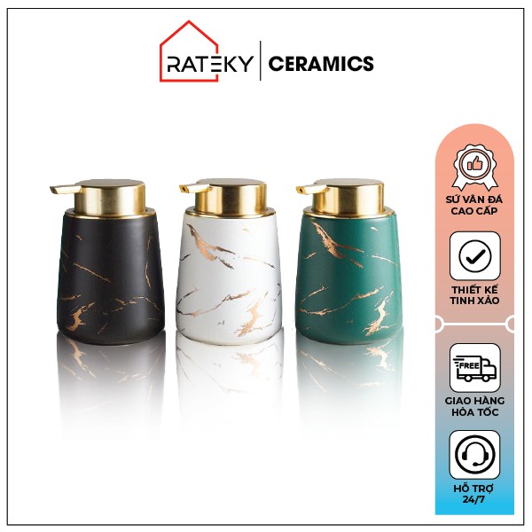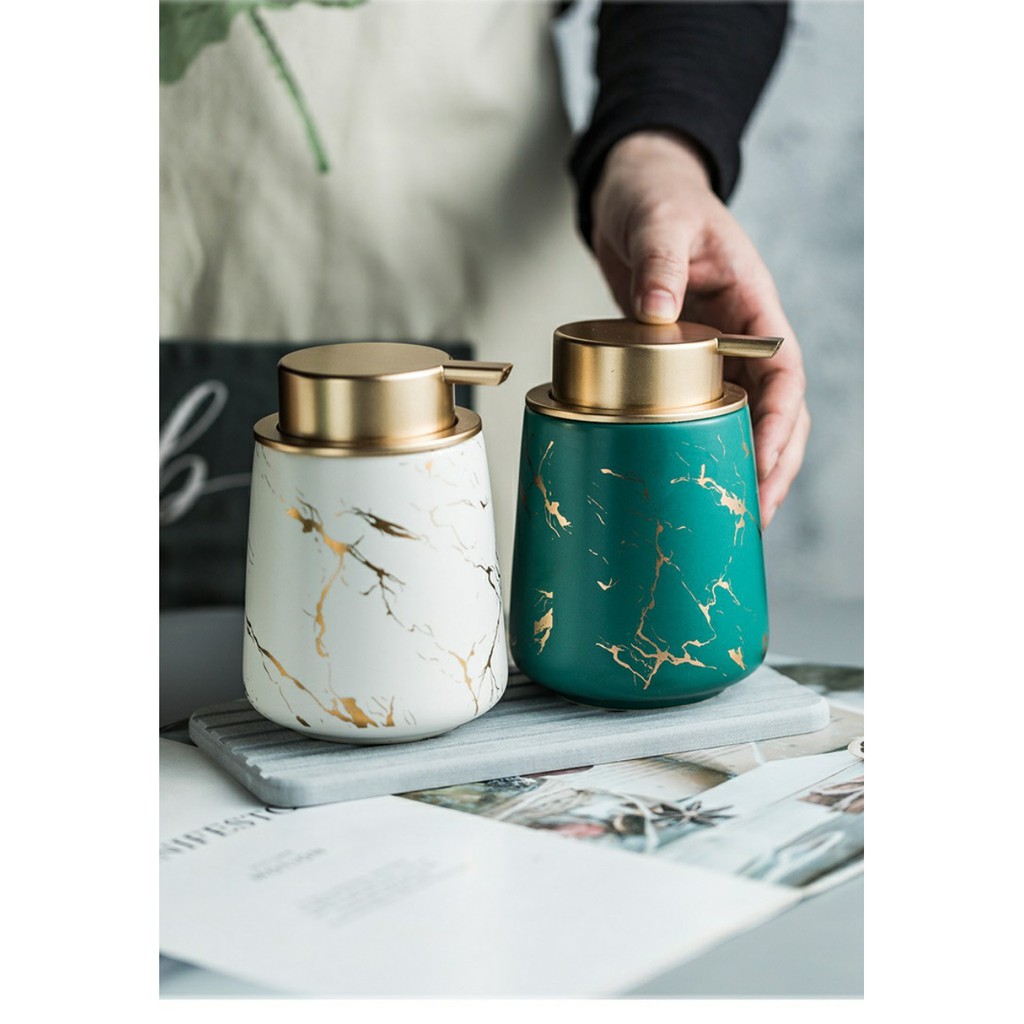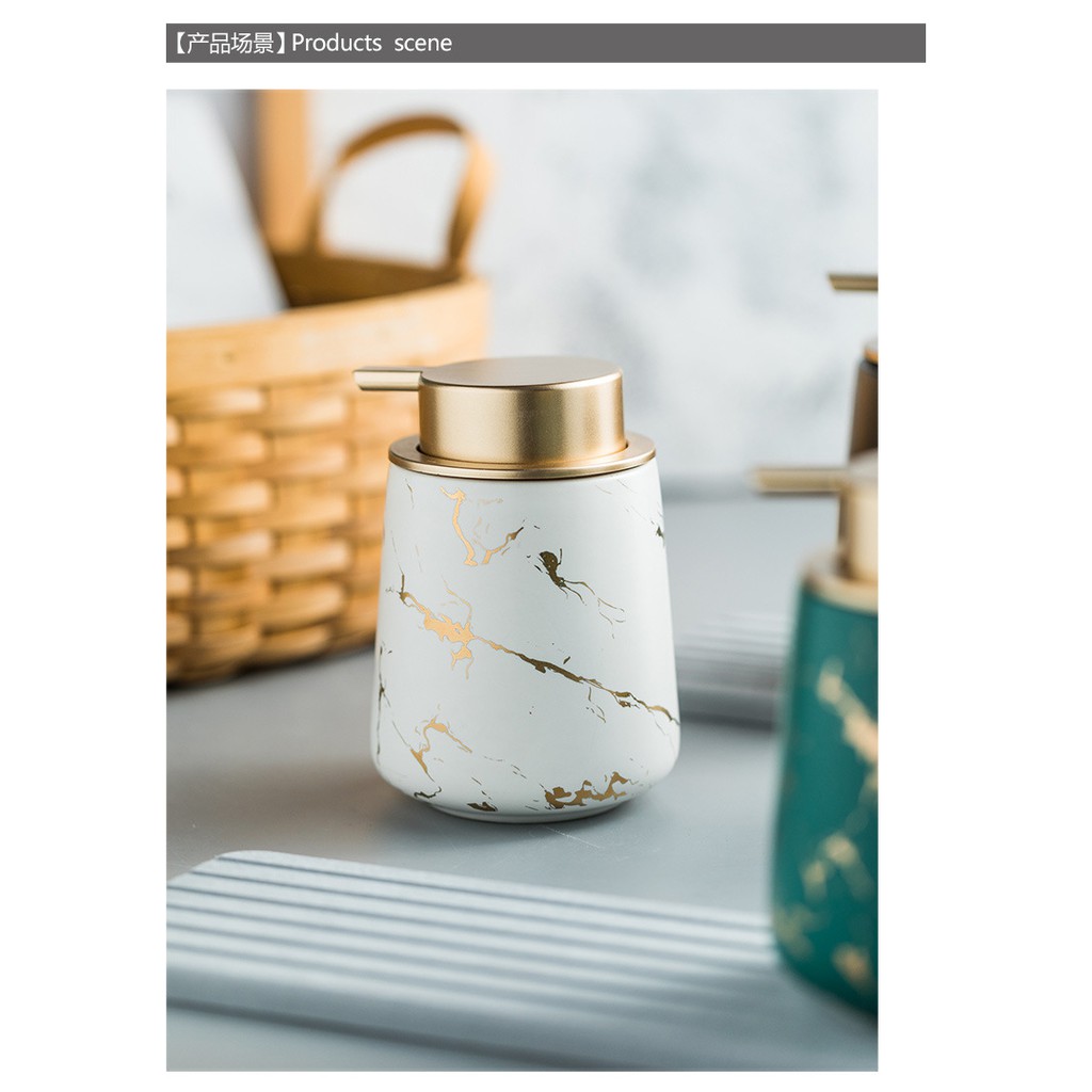 Nhà cửa & Đời sống > Đồ dùng phòng tắm > Kệ đựng xà phòng || Bình đựng nước rửa tay vòi nhấn, Chai đựng sữa tắm dầu gội đầu vân sứ cao cấp dùng trong khách sạn 400mlCòn hàng