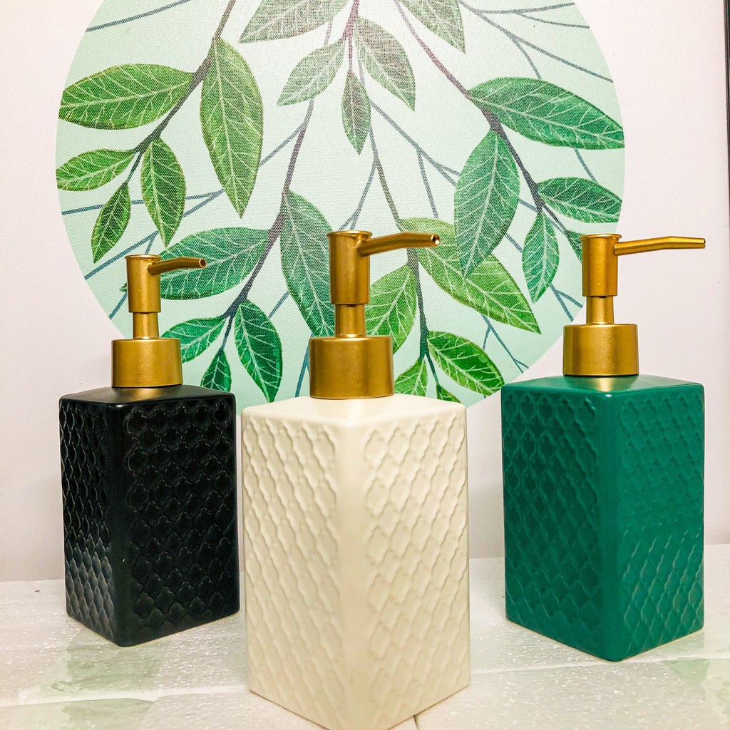 Home Art xin kính chào quý khách!*THÔNG TIN SẢN PHẨM : Bình Sứ Đựng Dầu Gội Sữa Tắm, Nước Rửa Tay Cao Cấp