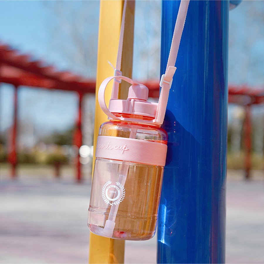 Giới thiệu Bình Đựng Nước Sports Cup Phong Cách Thể Thao Có Ống Hút Và Dây Đeo Tiện Lợi, Có Vạch Chia DT 600ML 1000ML 1500ML 2000ML