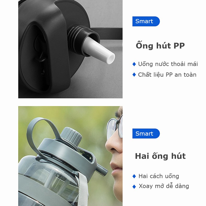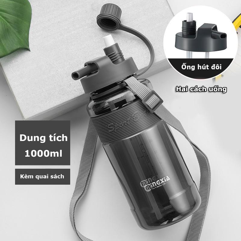 Giới thiệu Bình Đựng Nước Tập Gym Bình Nước Thể Thao Có Ống Hút Đôi tiện lợi 700ml 1000ml