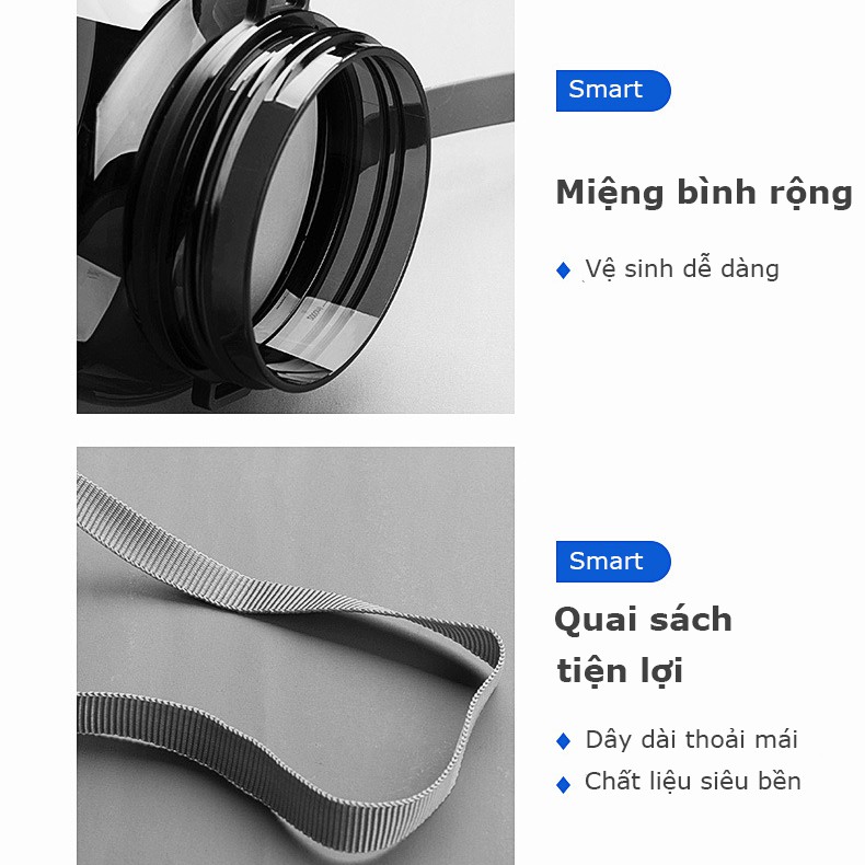 Sản phẩm có dây quai cầm tiện lợi cùng vạch chia lượng nước giúp cho bạn thuận tiện mang nước uống khi đến văn phòng, đi học, phòng tập gym, picnic...