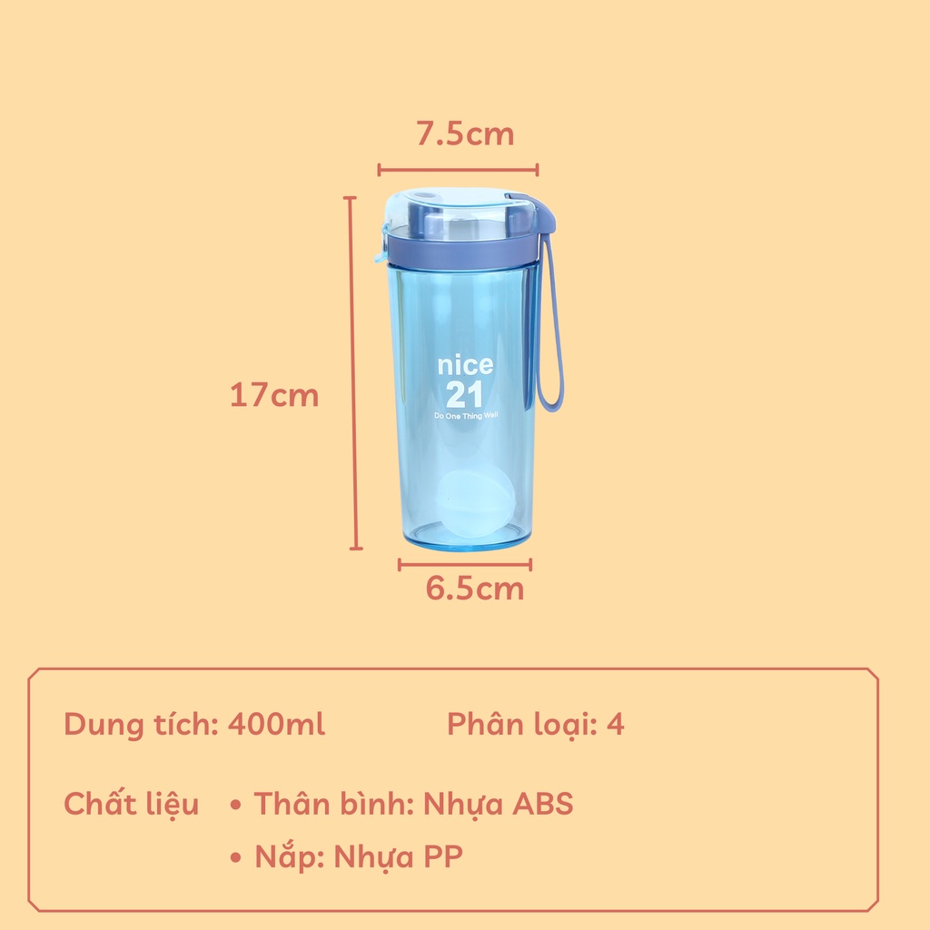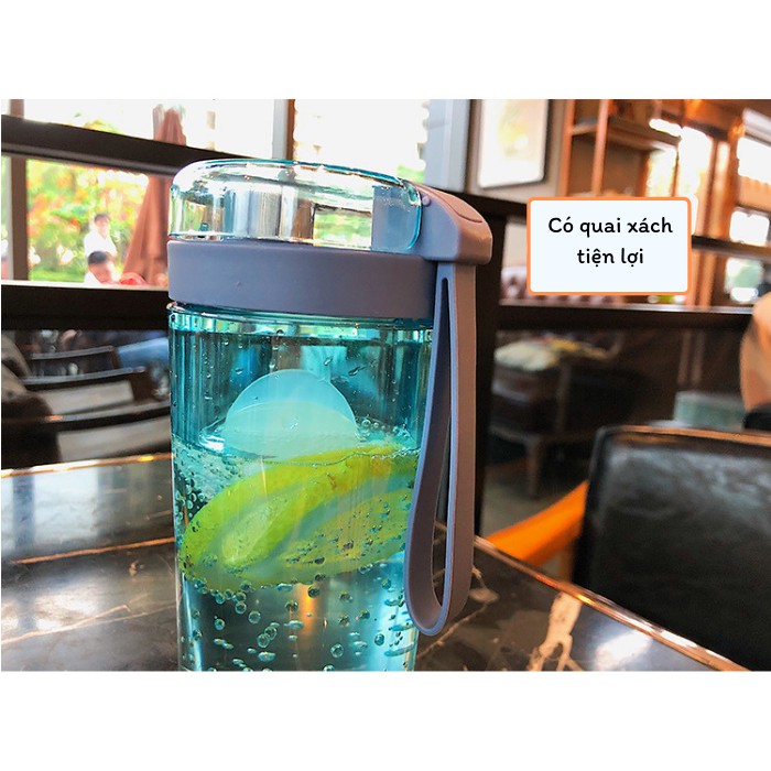 Bình đựng nước thể thao 400ml cao cấp có ống hút tiện lợi, kèm dây cầm