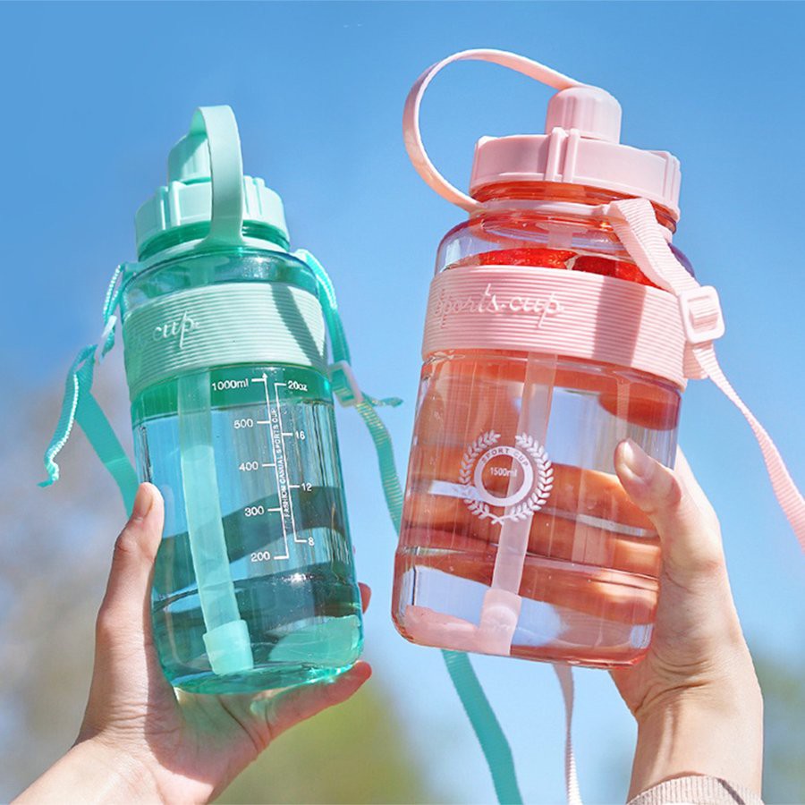 Bình Đựng Nước Thể Thao Có Ống Hút Và Dây Đeo Tiện Lợi