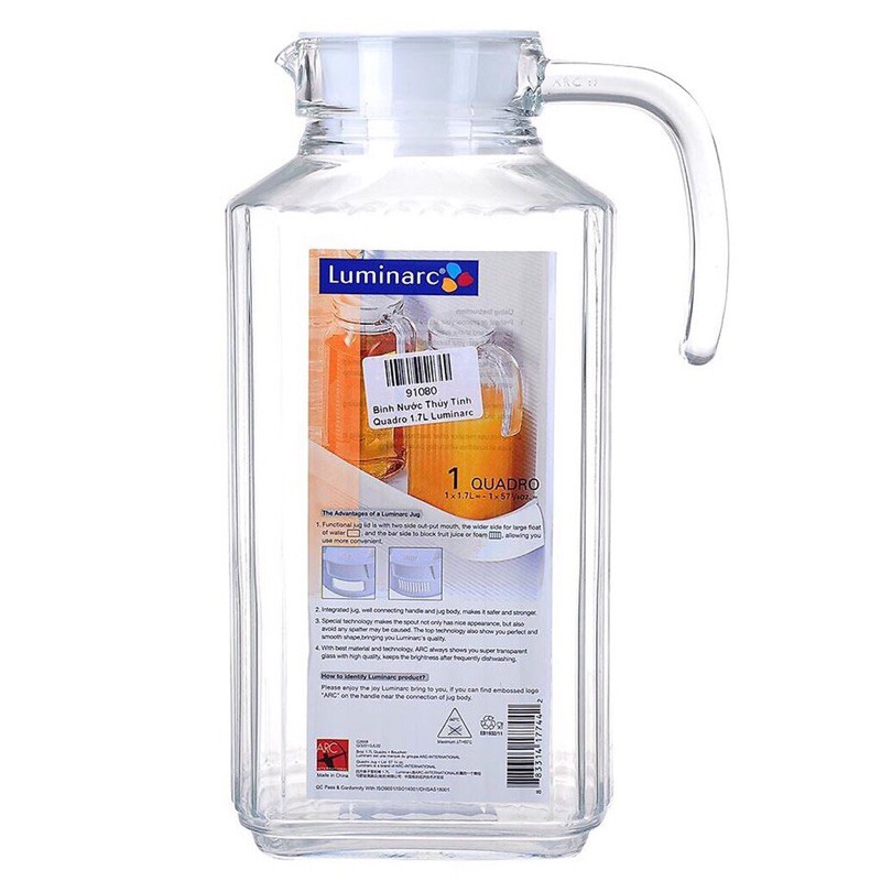 - Tên sản phẩm: Bình Nước Thủy Tinh Luminarc Quadro G2668 (1.7L)