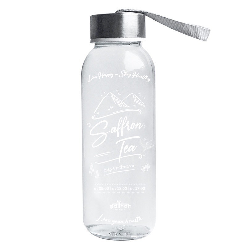 Quà tặng bình đựng nước 300ml / 500ml bằng thủy tinh với đầu lọc thép không gỉThương hiệu: SAFFRON VIỆT NAM