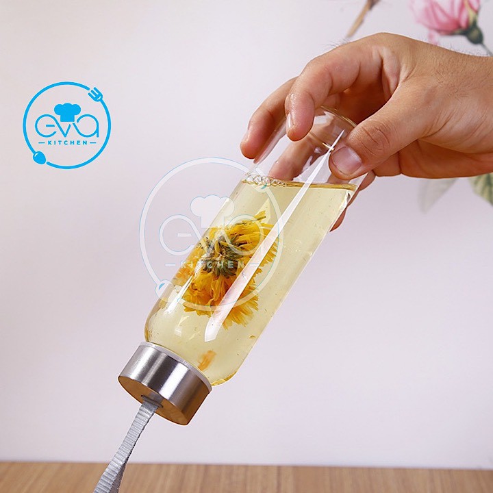 - Bình dây xách 500 ml thủy tinh rất phù hợp cho các loại thức uống: nước detox, nước ép, trà sữa… hoặc các loại thực phẩm khác.