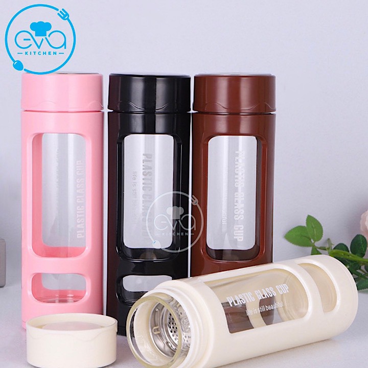 Bình Đựng Nước Thủy Tinh Chịu Nhiệt Kèm Lưới Lọc Và Vỏ Bọc Nhựa Chống Nóng 420 Ml BGN06