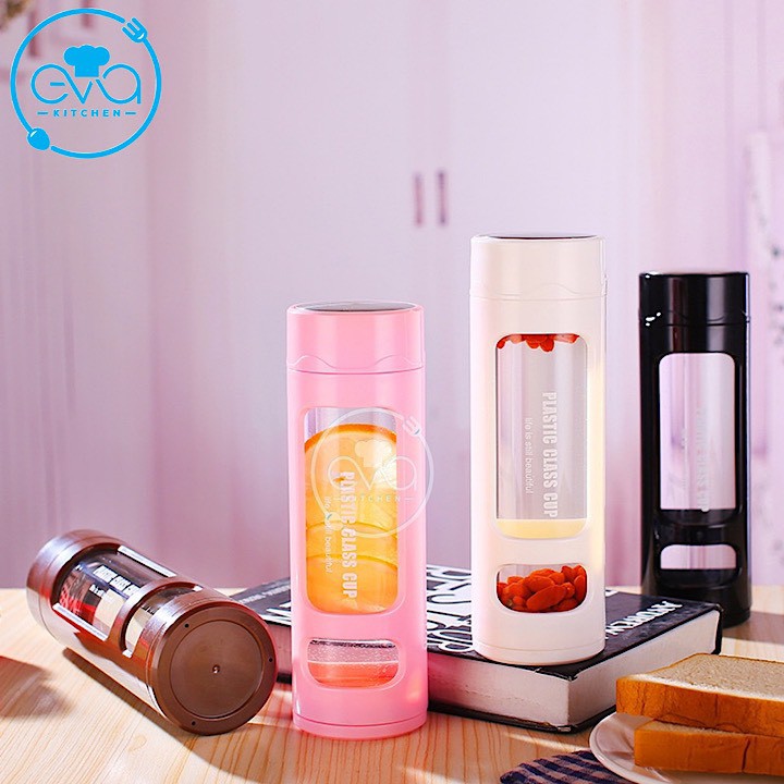 Giới thiệu Bình Đựng Nước Thủy Tinh Chịu Nhiệt Kèm Lưới Lọc Và Vỏ Bọc Nhựa Chống Nóng 420 Ml BGN06