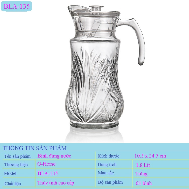 Giới thiệu Bình Đựng Nước Thủy Tinh Chịu Nhiệt Giá Rẻ Kiểu Dáng Đẹp G-Horse BLA-135 Dung Tích 1,8 Lít