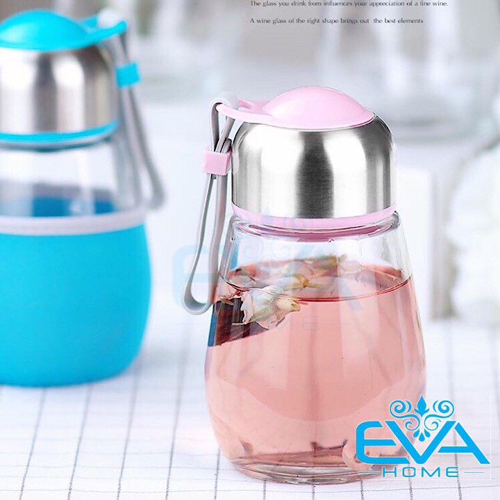 - Bộ sản phẩm gồm : 1 Bình nước thủy tinh nắp dây có vỏ bọc 400ml