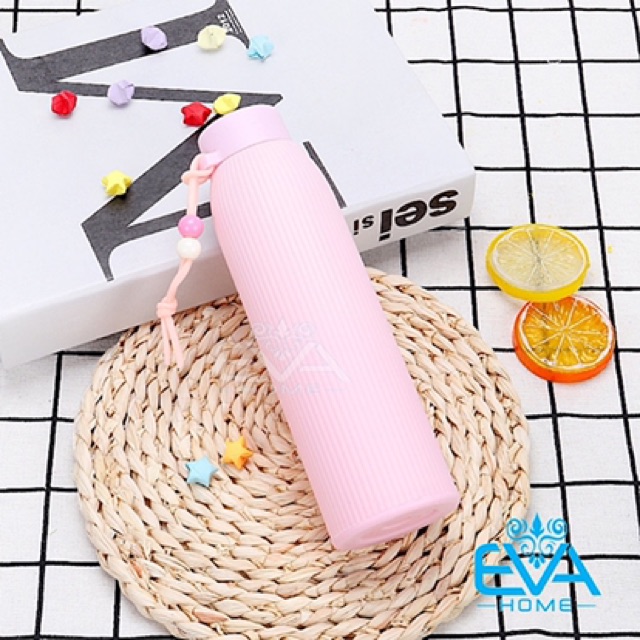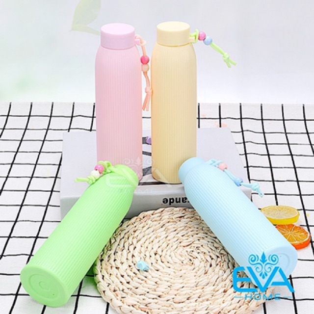-Thích hợp cho học sinh, sinh viên, nhân viên văn phòng. -Đạt tiêu chuẩn quốc gia an toàn thực phẩm 21cm. Bình nước có nắp đậy vặn xoáy bằng nhựa silicon có ron kín hơi 100%, trong là thủy tinh trong suốt được bọc bởi lớp vỏ bọc bình bằng silicon, màu rất dễ thương