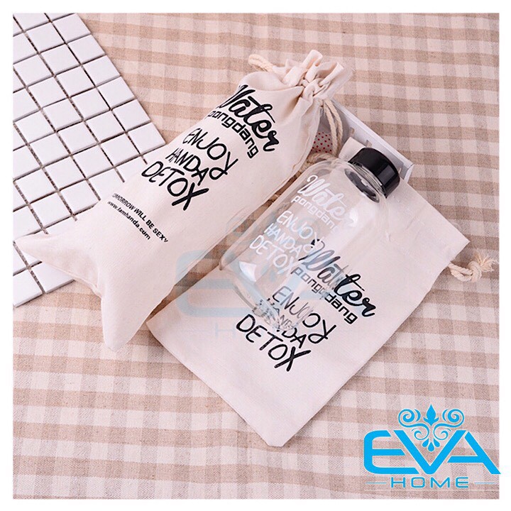 ***Mô tả sản phẩm : Chai thủy tinh đựng nước detox cao cấp 600ml kèm túi vải đựng