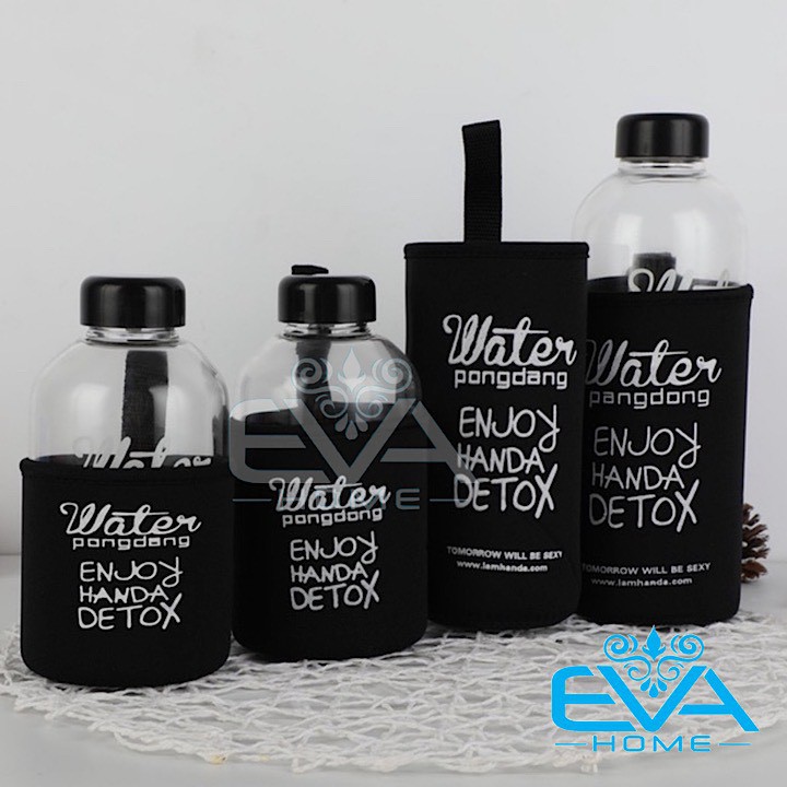 Giới thiệu Bình Đựng Nước Thuỷ Tinh Detox 1000 Ml Kèm Vỏ Bọc Vải Neoprene