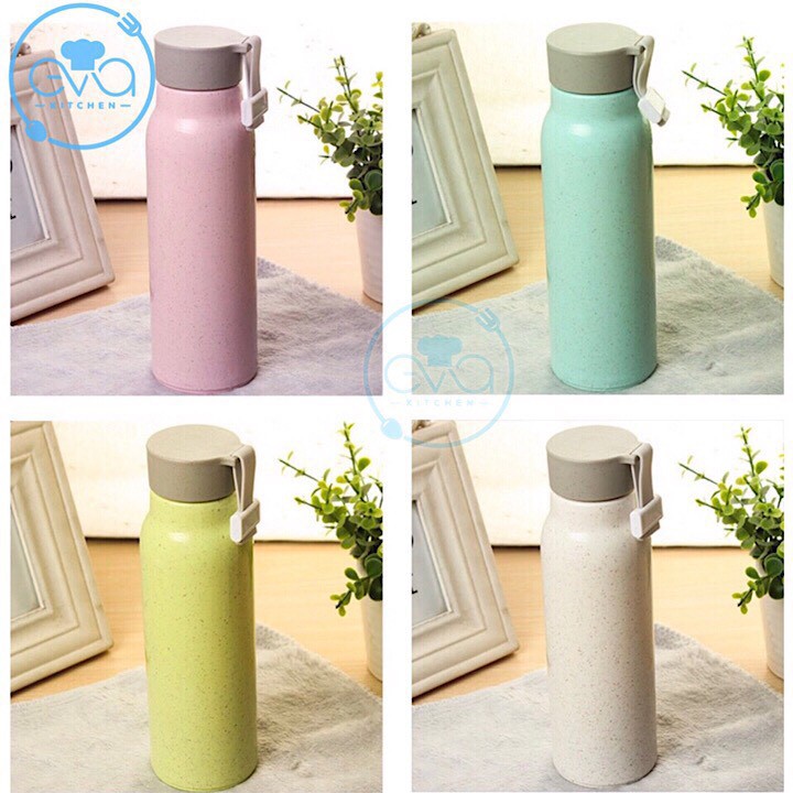 -Bình giữ nhiệt có ruột thuỷ tinh .với bao bọc lơp ngoài bằng nhựa lúa mạch . đang được rất ưa chuộng tại các nước phát triển , độ bám chắc chắn và cách nhiệt. có nắp đậy vặn xoáy bằng nhựa .không chưa chất độc hại cho sức khoẻ