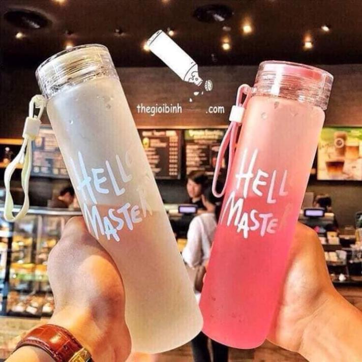 Bình đượng nước thủy tinh HELLO MASTER 450ml- Với thiết kế đơn giản bình thủy tinh có in chữ HELLO MASTER đủ màu và nắp nhựa có gioăng chất liệu cao su bạn hoàn toàn an tâm khi tiếp xúc với thức uống, hoàn toàn không chảy nước khi bạn để nghiên bình