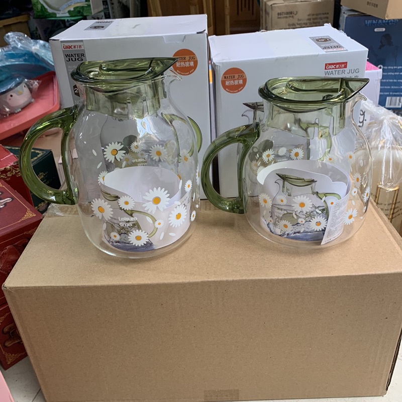 Bình đựng nước thuỷ tinh LiLac 2L- Bình thủy tinh Chịu nhiệt mẫu Hoa Văn cao cấp (HL)