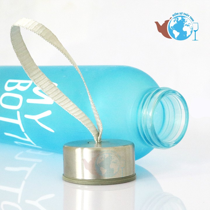 Bình đựng nước thủy tinh màu in chữ One Day Happy 500ml có dây xách