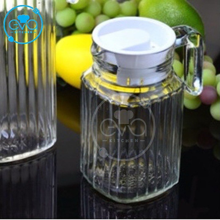 Giới thiệu Bình Đựng Nước Thuỷ Tinh Miệng Rót Sọc Có Quai Cầm 500 Ml M1205