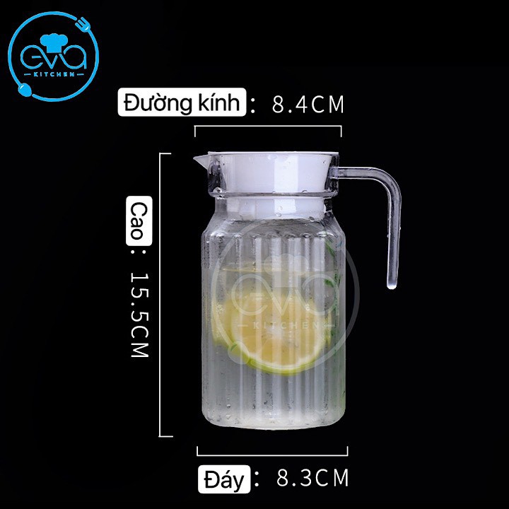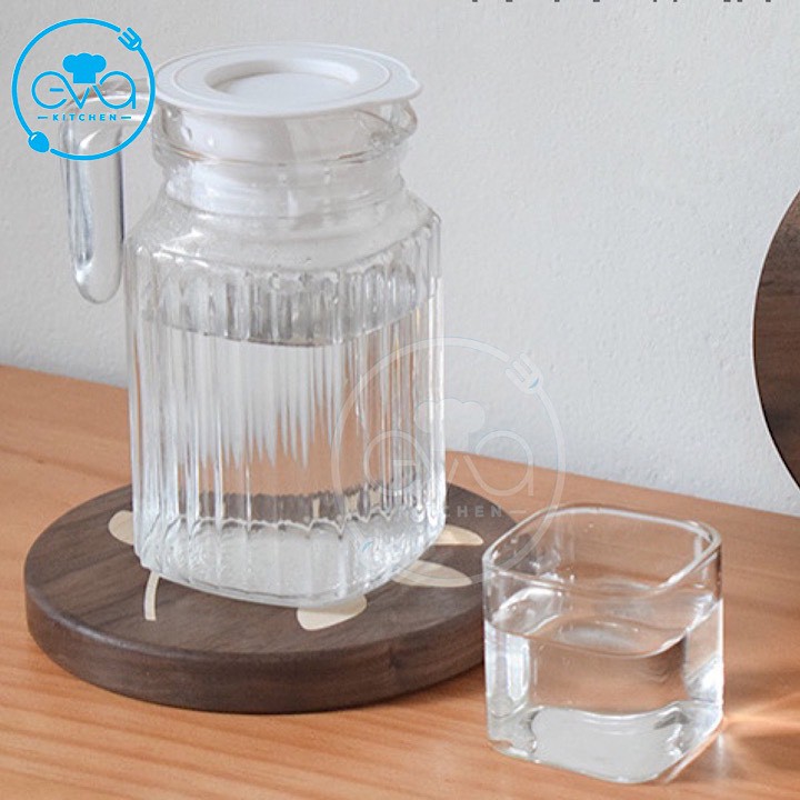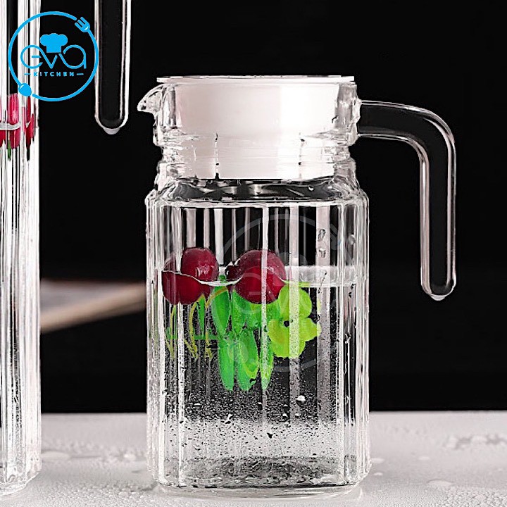 - Được làm từ chất liệu thủy tinh cao cấp, bình đựng nước vừa đảm bảo an toàn cho sức khỏe cho gia đình bạn, lại vừa đẹp mắt. Bạn có thể thoải mái để các loại nước hoa quả, nước ấm vào bình để uống và dễ dàng rửa sạch mà không lo bình bị bám màu khi để các loại nước quả như nước cam, nước dưa hấu...