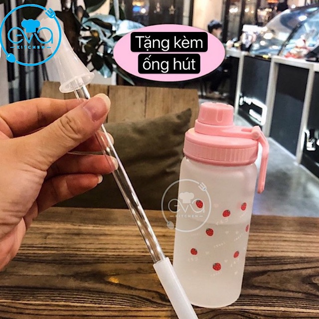 Bình Đựng Nước Thuỷ Tinh Mờ Nắp Bật Có Quai Cầm Dâu Tây Strawberry 500 Ml Tặng Kèm Ống Hút Tiện LợiMã Sản Phẩm : 0065002510