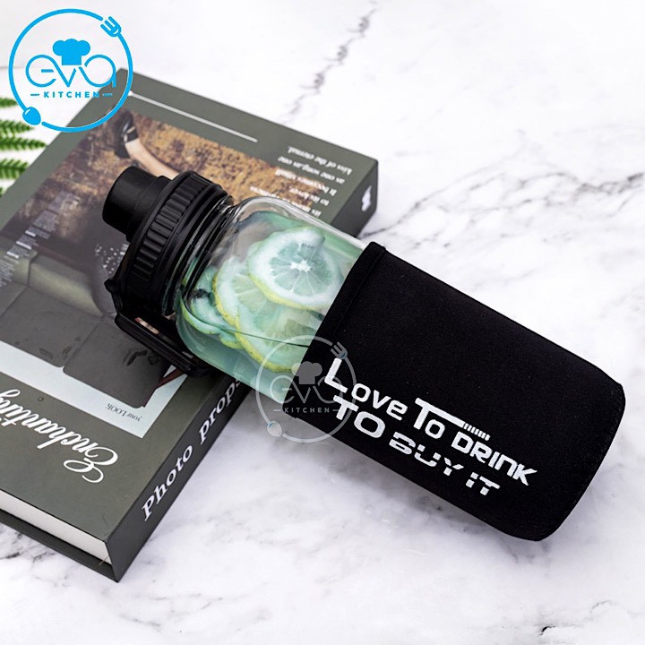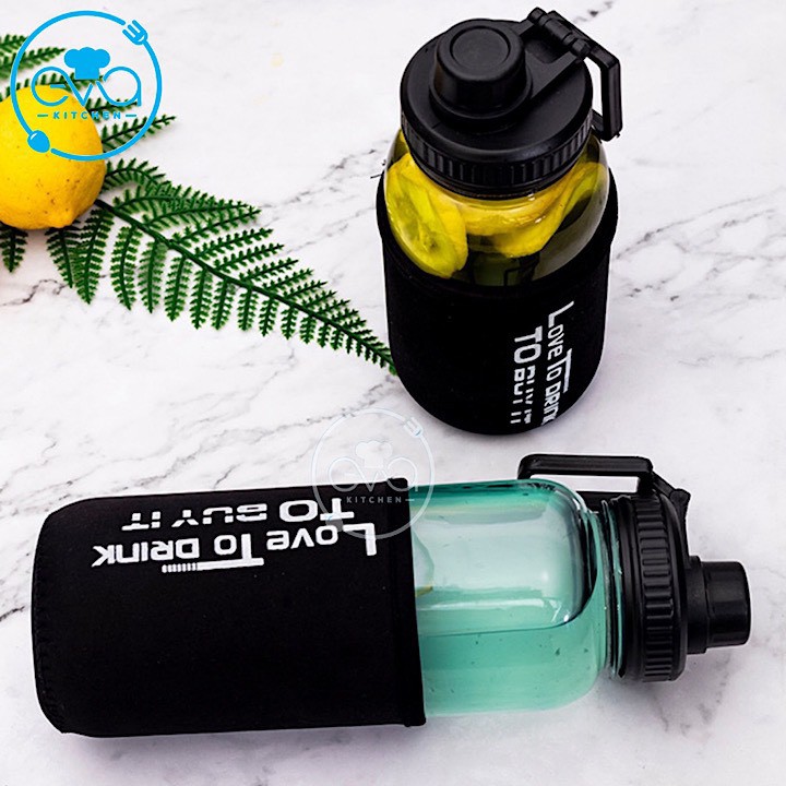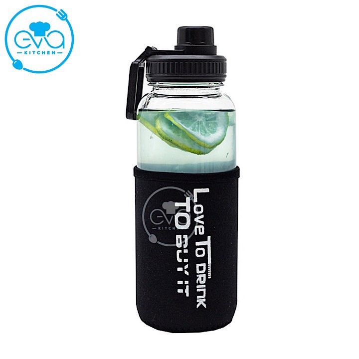 Nhà cửa & Đời sống > Bộ đồ bàn ăn > Bình nước & phụ kiện || Bình Đựng Nước Thuỷ Tinh Nắp Bật Có Quai Cầm Love To Drink 1000 ML Tặng Kèm Vỏ Bọc Vải NeopreneCòn hàng