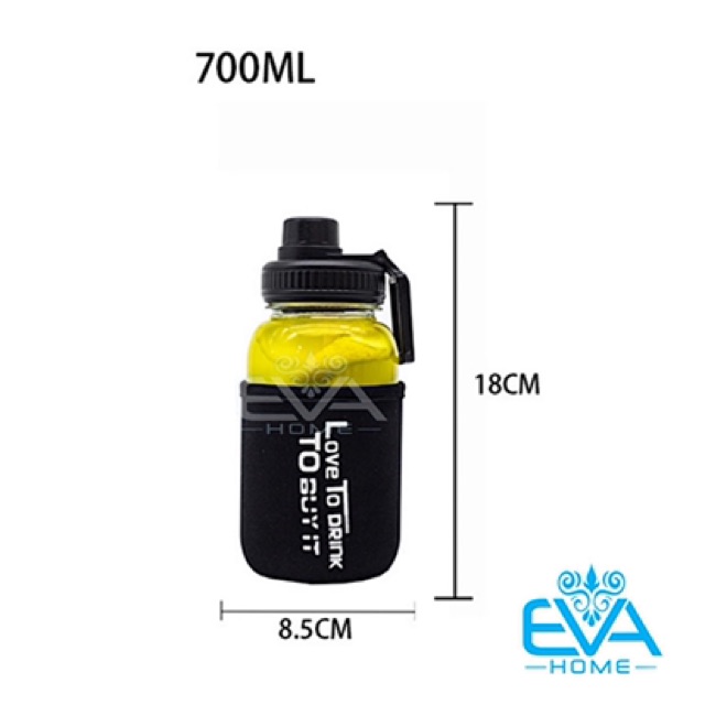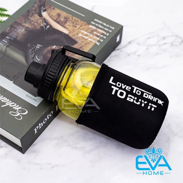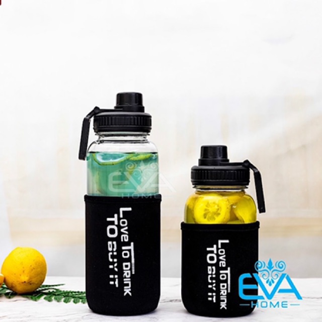 Nhà cửa & Đời sống > Bộ đồ bàn ăn > Bình nước & phụ kiện || Bình Đựng Nước Thuỷ Tinh Nắp Bật Có Quai Cầm Love To Drink 700ml Tặng Kèm Vỏ Bọc Vải NeopreneCòn hàng