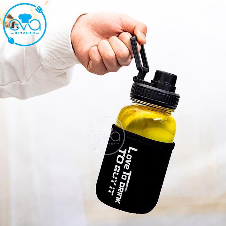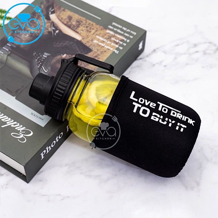 Nhà cửa & Đời sống > Bộ đồ bàn ăn > Bình nước & phụ kiện || Bình Đựng Nước Thuỷ Tinh Nắp Bật Có Quai Cầm Love To Drink 700ml Tặng Kèm Vỏ Bọc Vải NeopreneCòn hàng