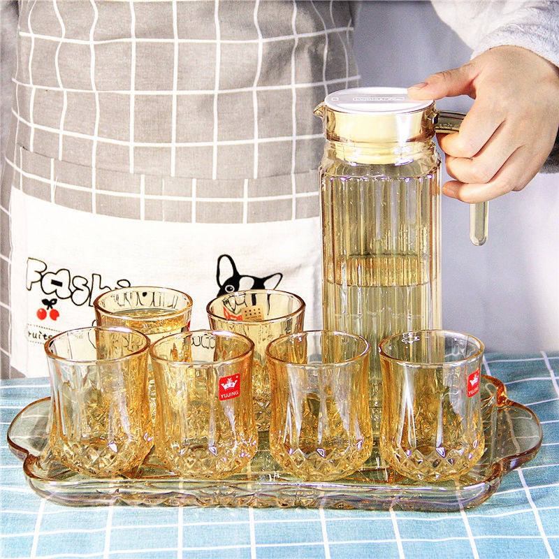 Nhà cửa & Đời sống > Bộ đồ bàn ăn > Bình nước & phụ kiện || Bình đựng nước thủy tinh vàng 1000ml,bình thủy tinh đựng nước cao cấpCòn hàng
