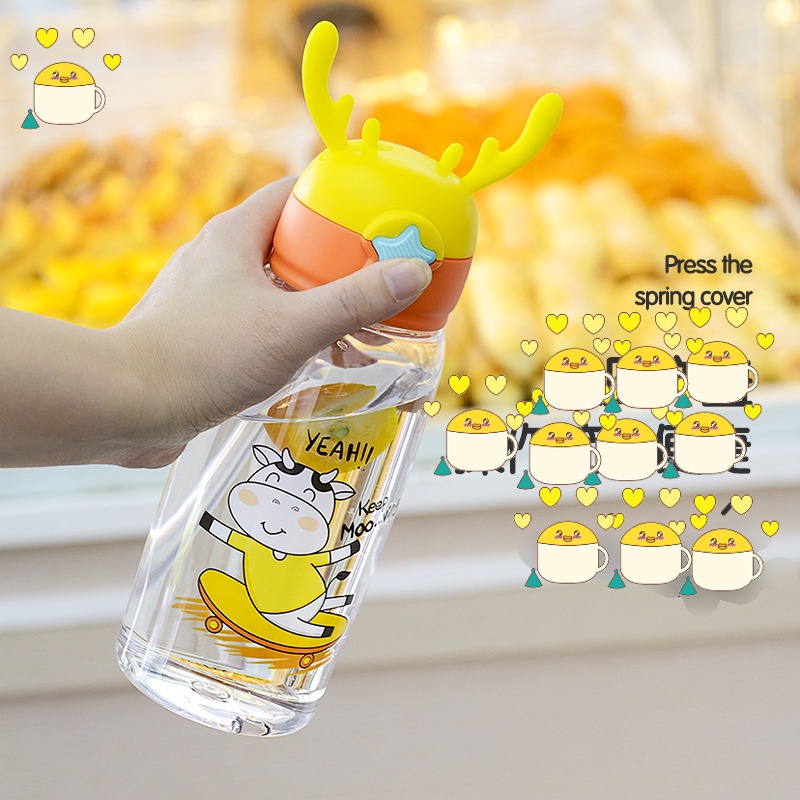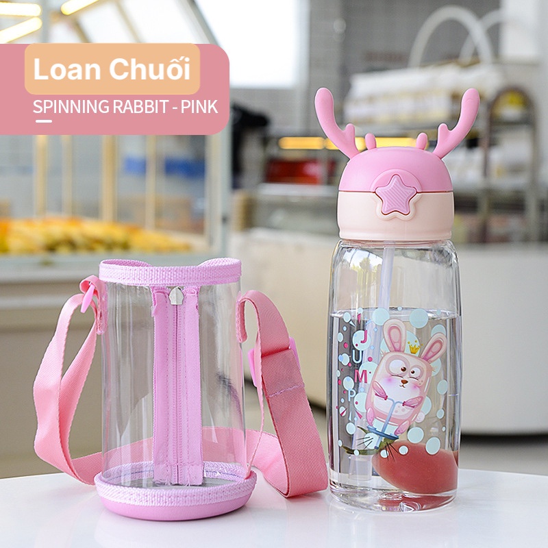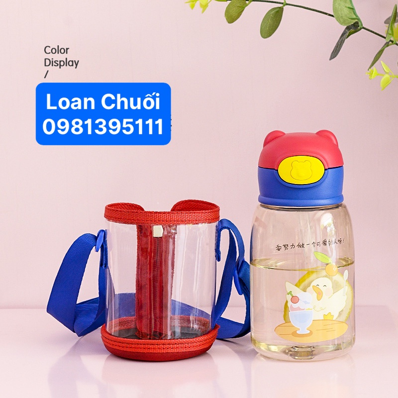 BÌNH ĐỰNG NƯỚC TRONG SUỐT TOUMTOU NHẬT BẢNBình nước học sinh TOUMTOU 520ml an toàn, có dây đeo.