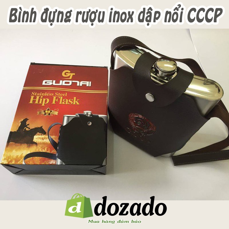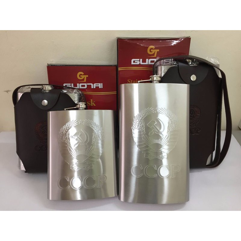 Bình Đựng Rượu Inox dập nổi CCCP xuất Nga đủ size, chất liệu inox 354 (là loại inox chuyên làm nồi inox đấy ạ, đựng chất lỏng ko rỉ sét ), kiểu dáng cổ điển, hình chữ nhật, đút túi gọn nhẹ và tiện lợi. có túi da bọc