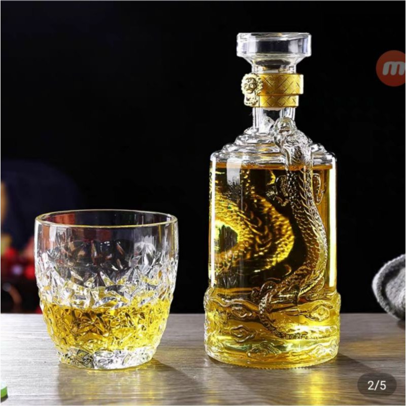 Nhà cửa & Đời sống > Bộ đồ bàn ăn > Bình nước & phụ kiện || Bình Đựng Rượu Thủy Tinh hình Trụ Rồng 500ML, Chai Rượu tròn hình rồngCòn hàng