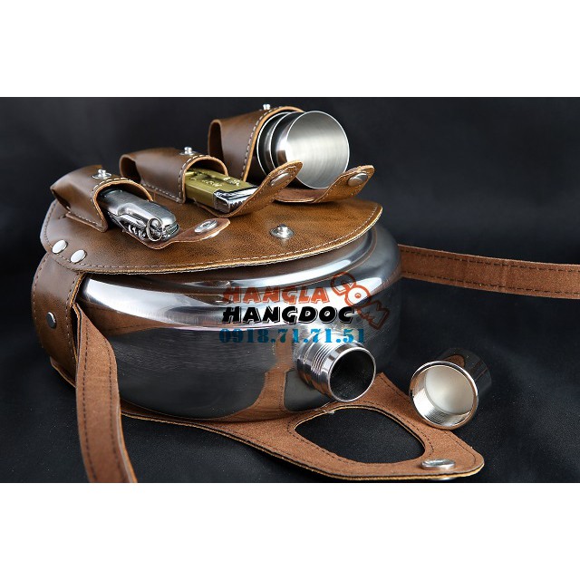 Nhà cửa & Đời sống > Dụng cụ nhà bếp > Dụng cụ pha trà, cà phê || Bình đựng rượu tròn CCCP 1.2L (42oz) inox 304, túi da kèm dụng cụ đa năng tiện íchCòn hàng