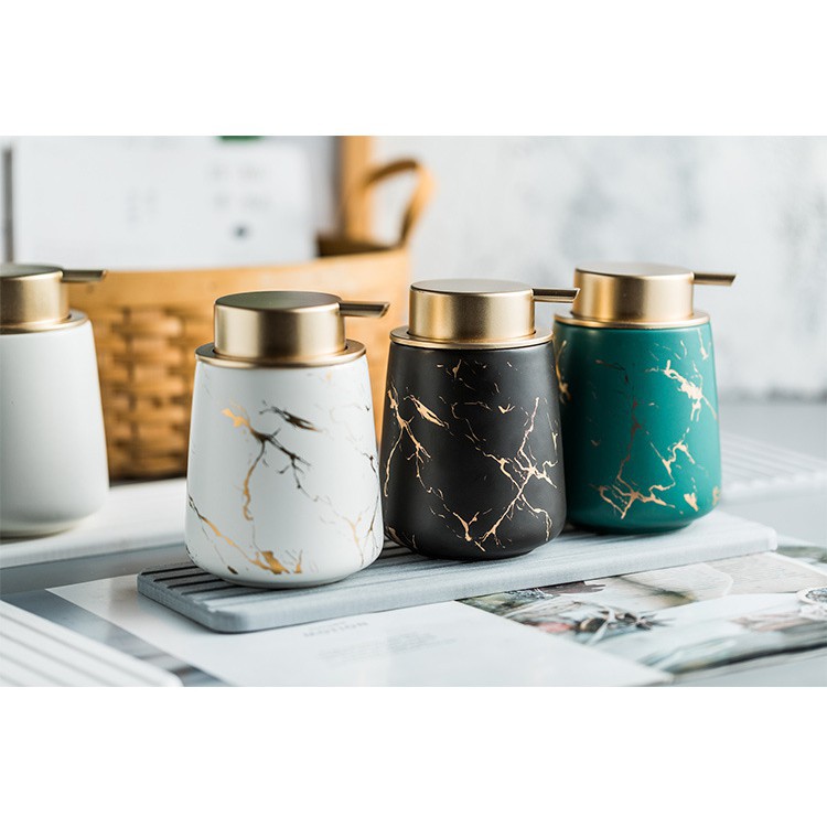Nhà cửa & Đời sống > Đồ dùng phòng tắm > Kệ đựng xà phòng || Bình Đựng Sữa Tắm, dầu gội, Bình đựng nước rửa tay 400ml Bằng Gốm Sứ Vân Cẩm Thạch Cao Cấp trong khách sạnCòn hàng