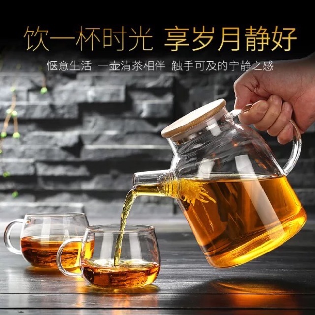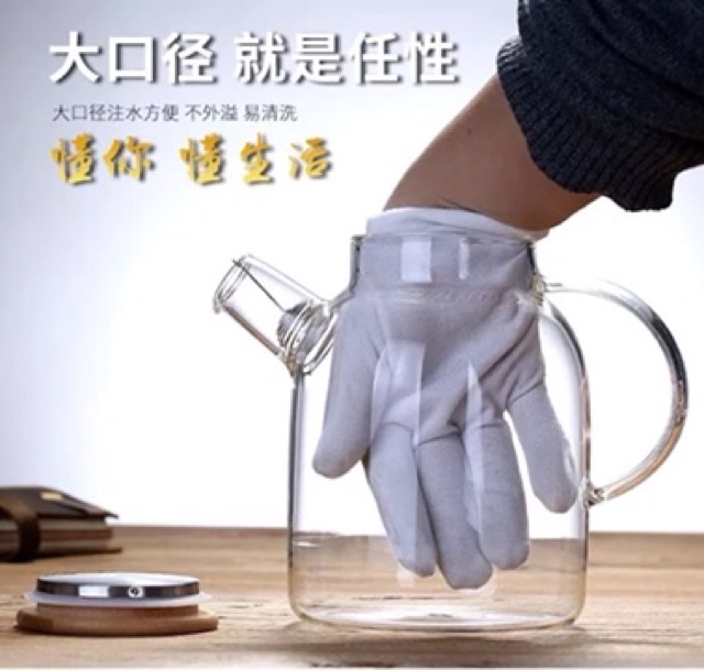 Bình đựng trà,nước, sinh tố có dung tích 1600mlThiết kế hoàn toàn bằng 100% thuỷ tinh cao cấp chịu nhiệt từ -20 độ C đến 150 độ C. Đun được trên bếp ga và bếp từ
