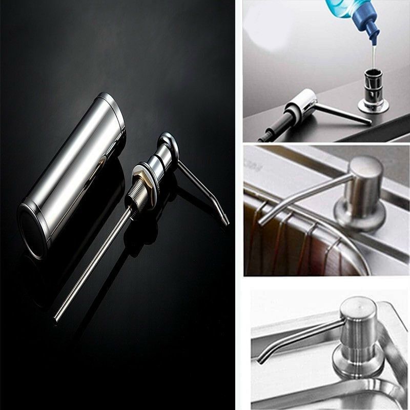 Bình đựng xà bông rửa chén inox gắn trên chậu rửa chén.Rất tiện lợi khi sử dụng, không gian chậu bếp gọn gàng & sạch đẹp.