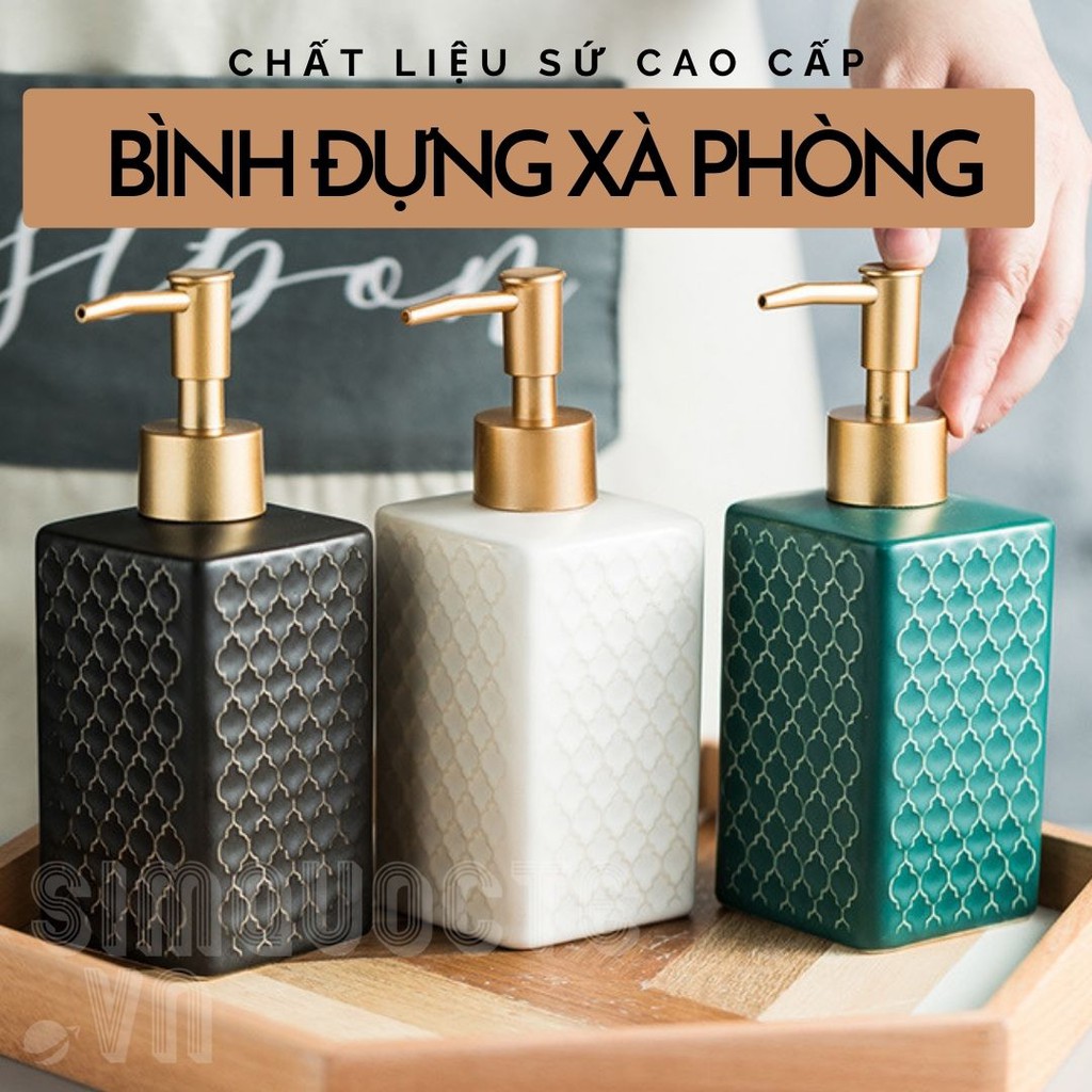 Bình đựng xà phòng, bình sứ đựng sữa tắm, dầu gội hoạ tiết cổ điển sang trọng