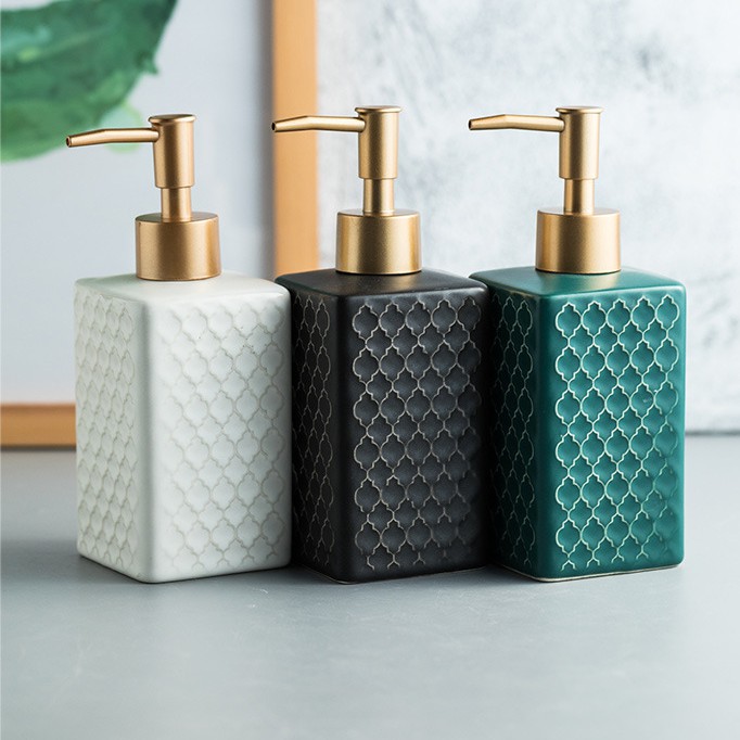 Giới thiệu Bình đựng xà phòng, bình sứ đựng sữa tắm, dầu gội hoạ tiết cổ điển sang trọng