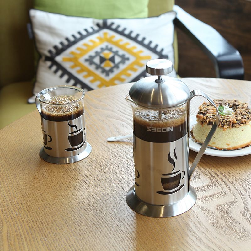 Cà phê French Press được rất nhiều người ưa thích bởi cách pha chế rất nhanh chóng và dễ dàng. Bình được làm từ chất liệu inox 304. Bình đựng được làm từ thủy tinh chịu nhiệt, chịu được nước sôi và nước lạnh.