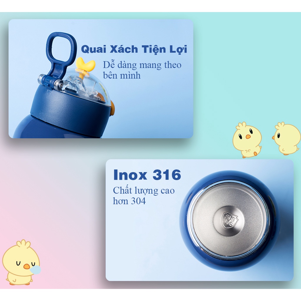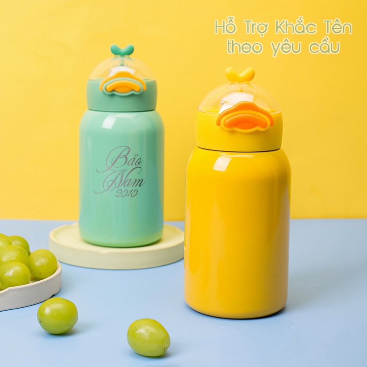 Bình giữ nhiệt 400ml Good Duck tặng Sticker bình đựng nước inox 316 có ống hút tiện lợi Fan House khắc tên theo yêu cầu