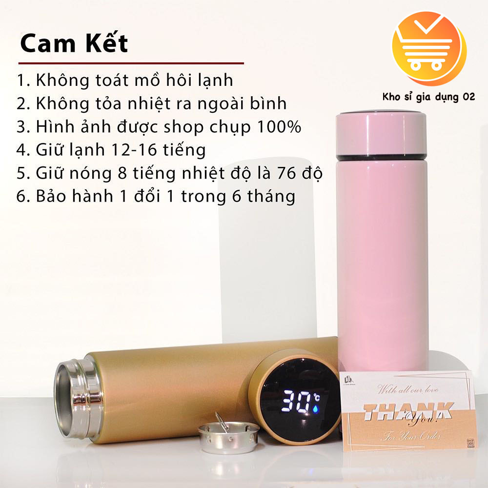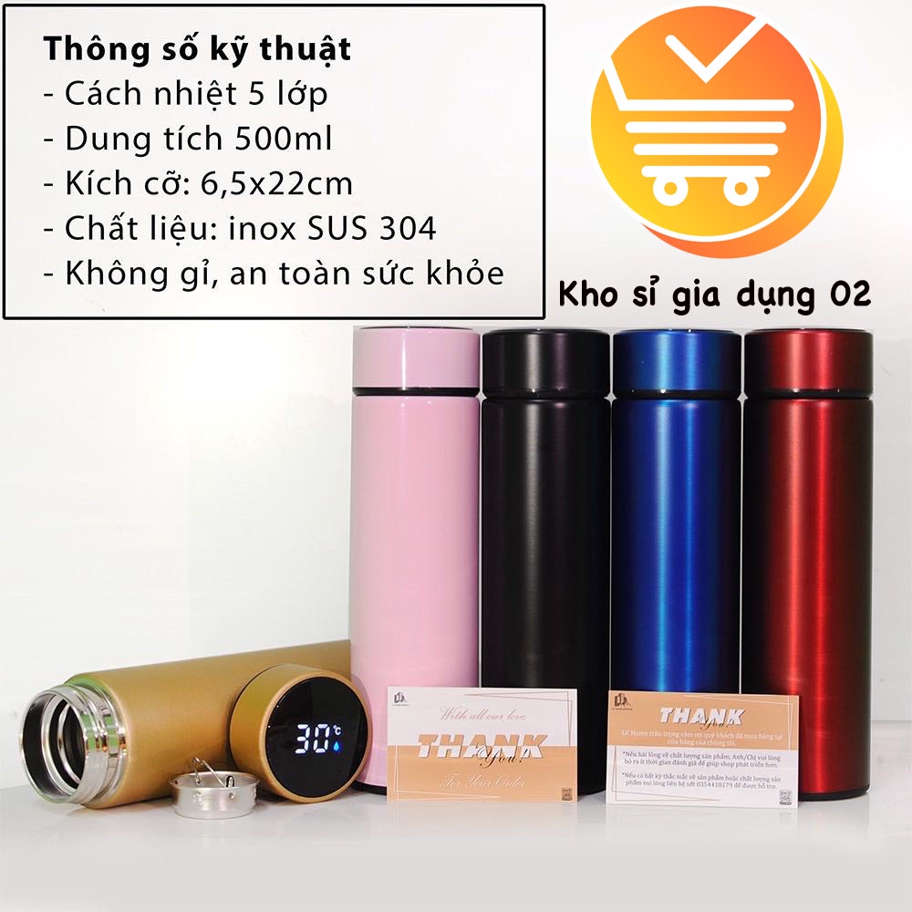 Bình Giữ Nhiệt 500ml Hiển Thị Nhiệt Độ Có Bảo Hành - Bình Ly Giữ Nhiệt INOX 304 Có Nhiệt Kế Thông Minh Hiển Thị Nhiệt Độ