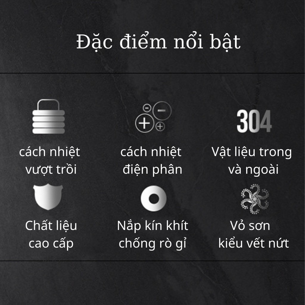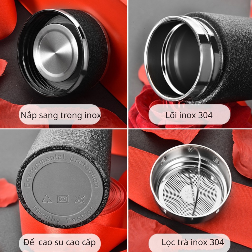 - Chất liệu an toàn cho người sử dụng: Lõi, đế nắp và lưới lọc trà của bình giữ nhiệt này đều được làm từ thép không gỉ 304 cao cấp, đạt chuẩn an toàn chịu nhiệt khi chứa đựng thực phẩm ở nhiệt độ cao) (Hàng tốt khi mở nắp ngủi không có mùi hôi khó chịu).