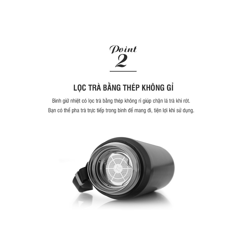 Nắp bình có gioăng vặn kín khít giúp nước không bị tràn ra ngoài khi di chuyển đồng thời tăng khả năng giữ nhiệt bên trong. Phần nắp có gờ giúp bạn dễ dàng khi thao tác vặn mở - đóng, thuận tiện trong quá trình sử dụng.